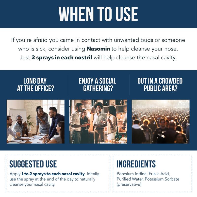 Crowds, flights, gyms, and daily errands add up fast. Nasomin's Nasal Iodine Cleanse Spray (100% Natural, 2 oz) helps your nose feel cleaner in seconds so you can move on with confidence.
